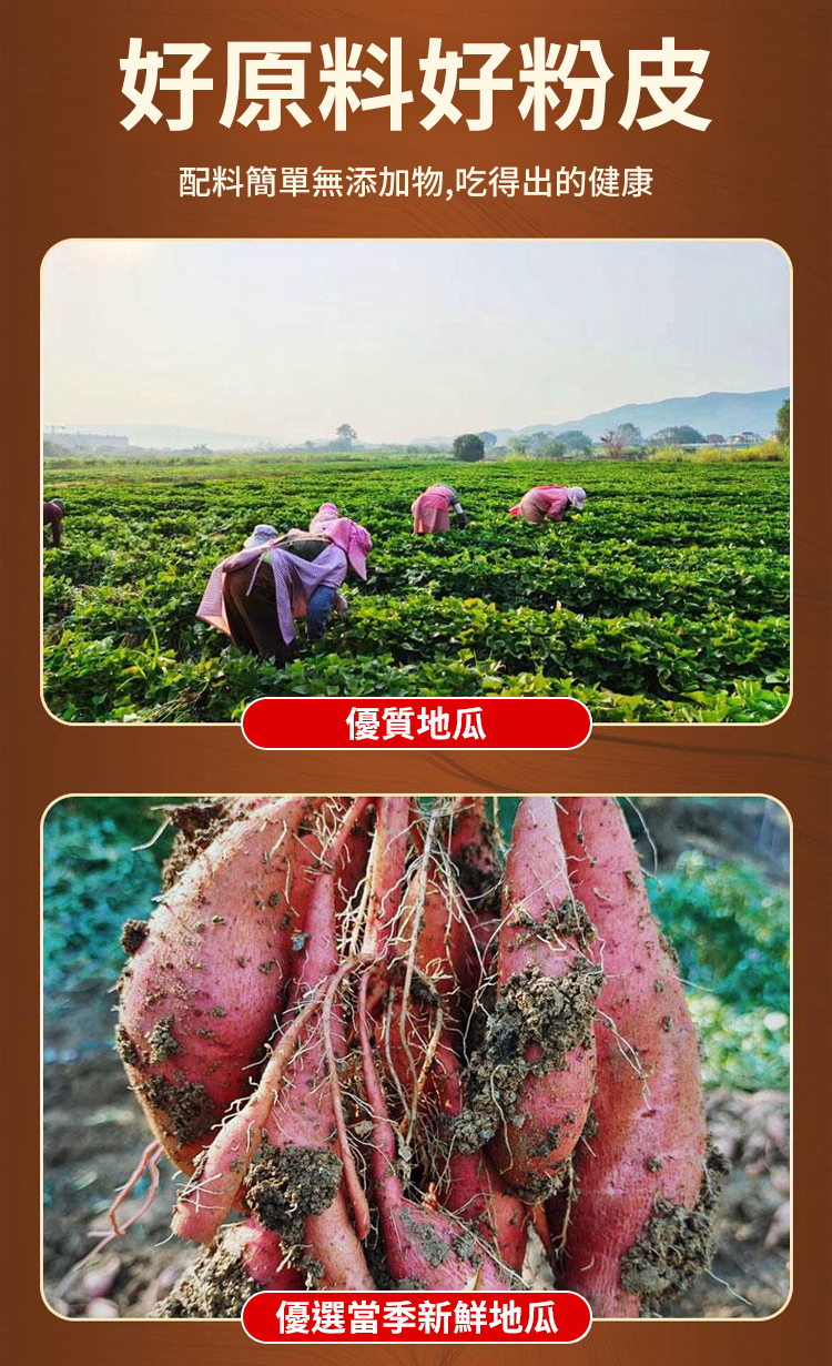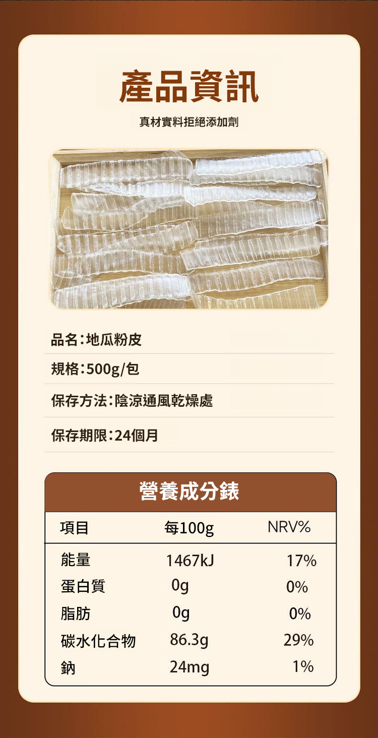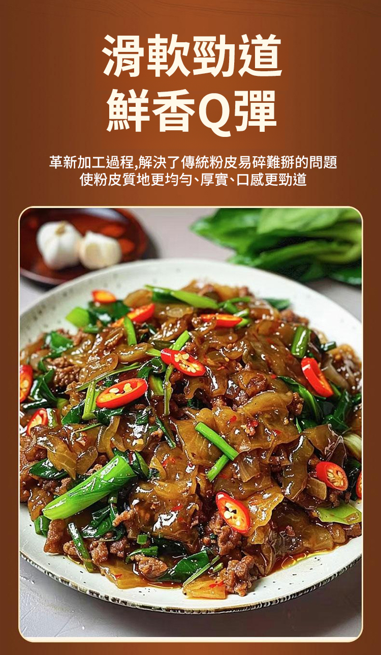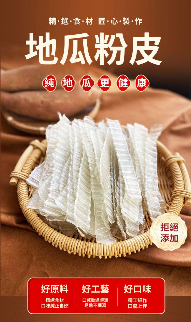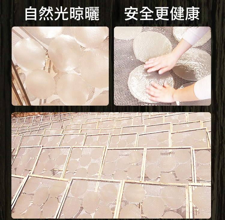 「純紅薯製作」連寶寶都能安心吃!零防腐劑、零漂白劑、零明膠!特別適合:準備副食品的媽媽、注重養生的銀髮族、追求天然的上班族;古法製作,18道工序絕不馬虎,堅持三洗三曬傳統工法,從選薯、磨漿、沉澱到晾曬,整整需要72小時!很多老師傅都說:「這才是真正會呼吸的粉皮!」