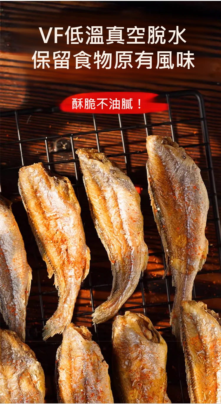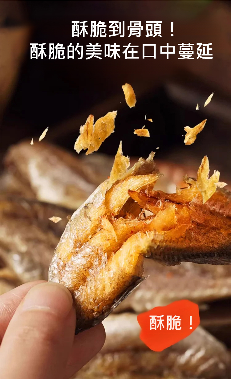 這款小魚蘇,鹹香口感,鮮掉眉毛! 用料捨得,個體大肉很多!低溫真空油炸,保證口感的同時,杜絕因高溫油炸而產生有害物質,所以更酥脆更健康!吃一口就上癮,「咔呲咔呲」根本停不下來!