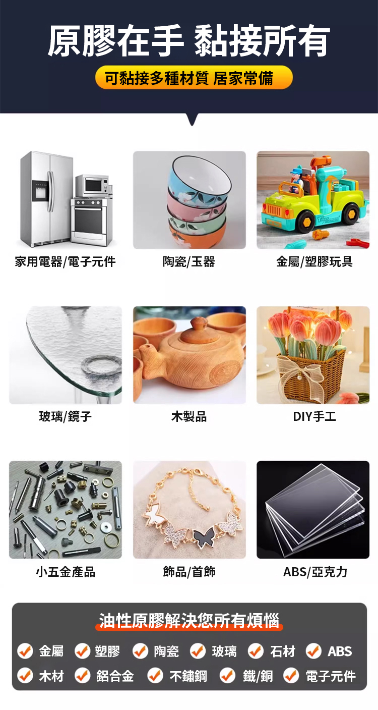 【萬物都能黏】強力萬用油性膠,一膠搞定72種材質,20秒就能牢固固定