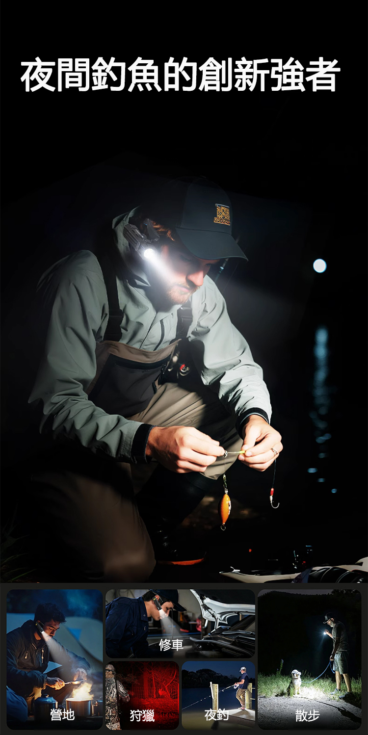 夜釣一族誇讚不停👍戶外愛好者強推不止👍德國品質掛耳式頭燈🏆揮手感應開關燈,解放雙手超級方便💡爆亮燈珠,130m內亮如白晝,比汽車大燈還要亮🔋耐高溫耐低溫,電池壽命長,照明持久