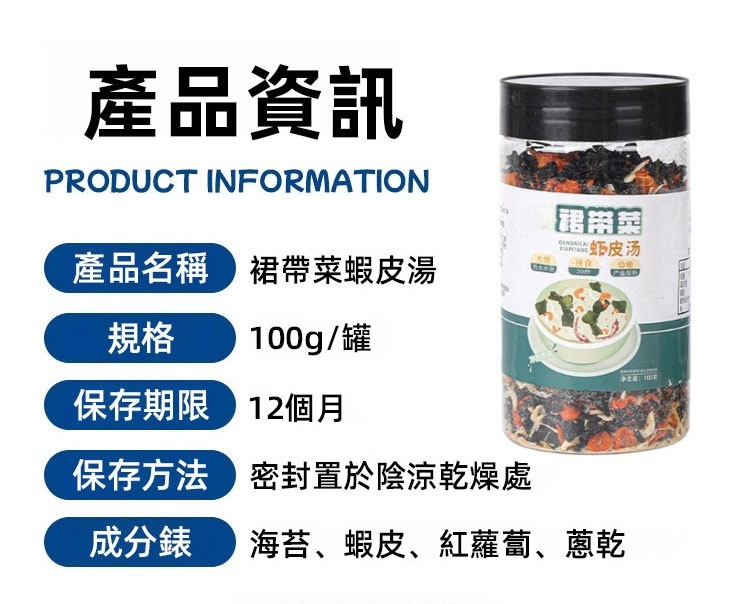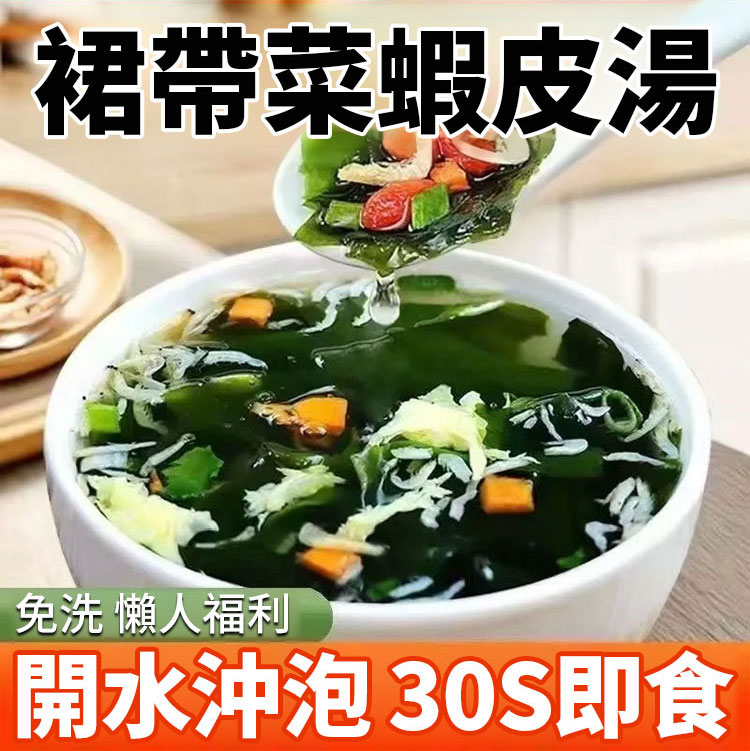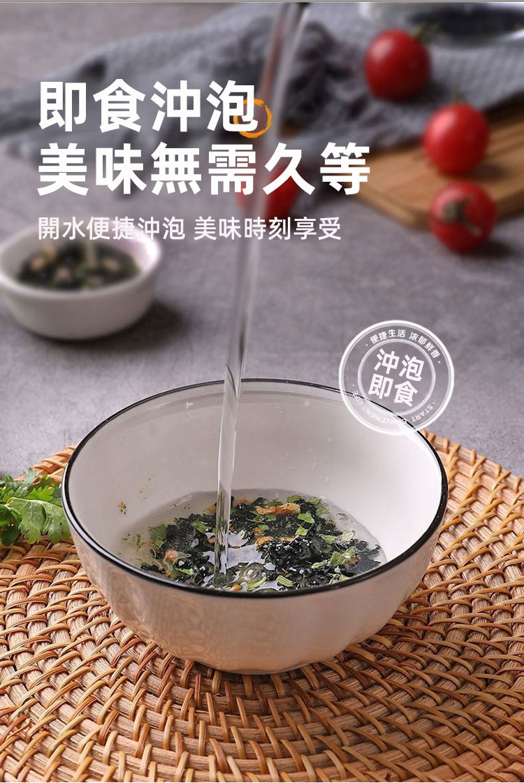 紫菜蝦皮速食湯料,熱水30秒快速沖泡,營養豐富,鮮掉眉毛