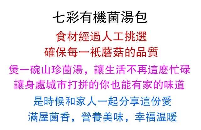七彩台灣有機菌湯包,用它煲一碗山珍菌湯,和家人一起分享營養美味,幸福溫暖❤️